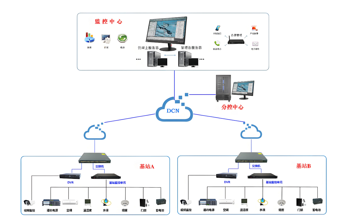 我司设计的系统含动力与环境监控模块:动力模块实时采集市电电压、电流、UPS 续航,电压波动超 ±5% 或电量低于 20% 自动报警;环境模块通过传感器监测温湿度、空气质量、人员进出,异常时联动空调、排风设备调节。